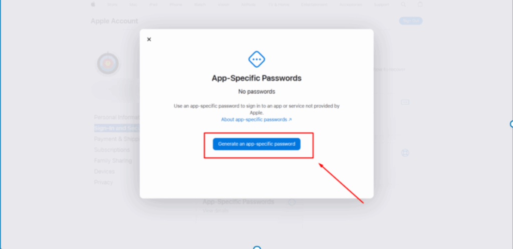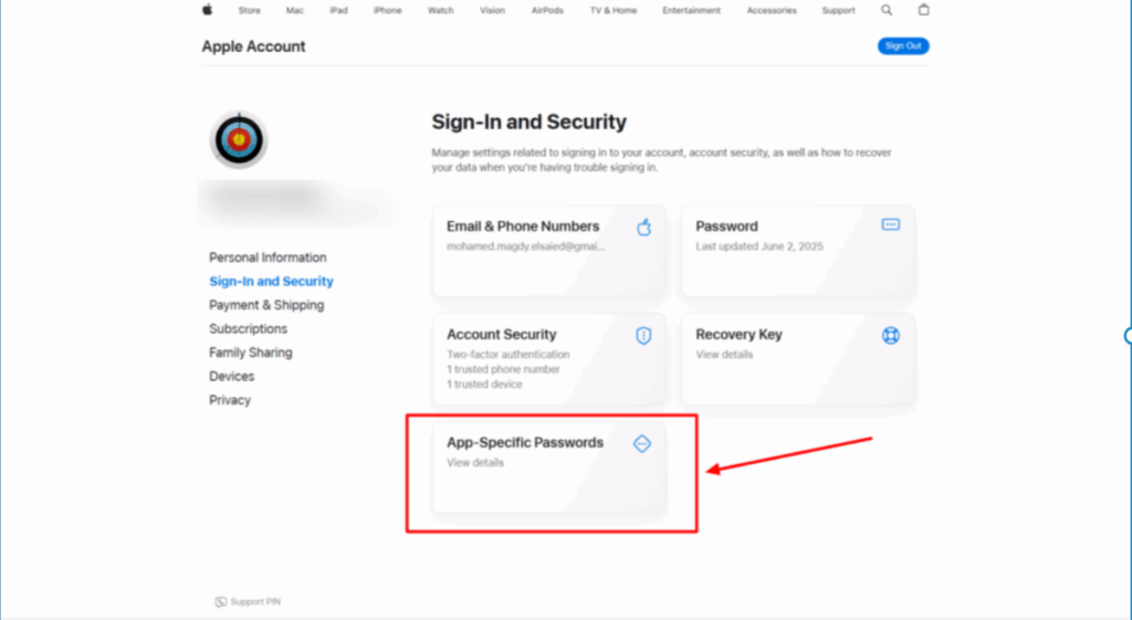 6. From the Sign-In and Security section, click on the App-Specific Passwords card.