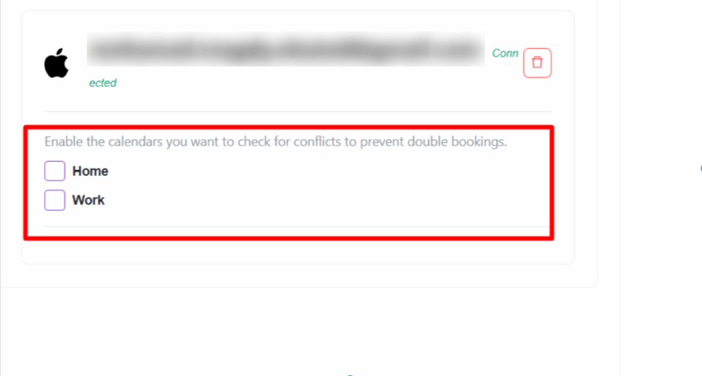 12. In the checkbox fields, you can enable the calendars you want to check for conflicts to prevent double bookings.