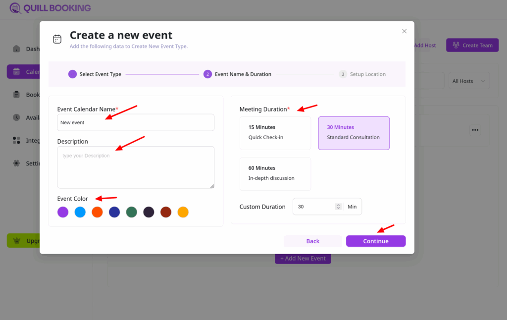 Welcome to the guide for creating new booking events in QuillBooking. Follow these simple steps to set up a new event and start accepting bookings right away!