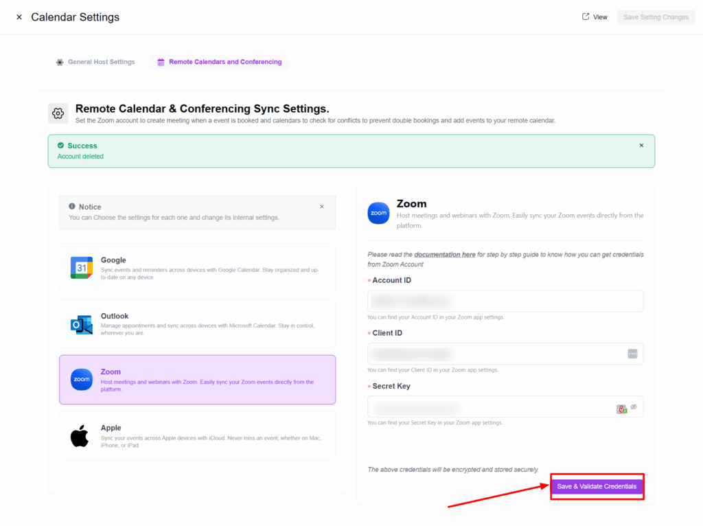Any zoom account you add to a calendar will be displayed here.